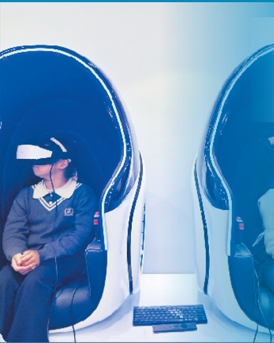 在曹楊實驗小學點位,小朋友在進行VR體驗 記者 陶磊攝