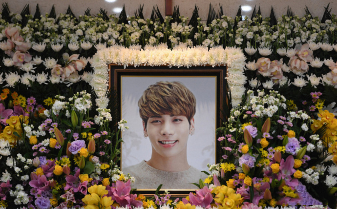 12月20日,張藝興抵達(dá)韓國(guó)吊唁已逝的SHINee成員金鐘鉉,張藝興低頭不語(yǔ)快速走進(jìn)靈堂,面色凝重,可以看出心情十分悲痛。