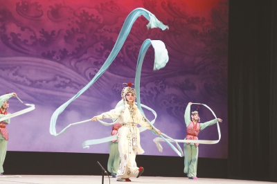 下腰、鷂子翻身、耍槍花、耍長綢、翻跟頭……昨晚的 《雷峰塔》演至 《水斗》一折,白素貞、小青與眾水族、天將們激斗正酣,頓時點燃東北觀眾的熱情,相比于前一晚看 《牡丹亭》的 “坐得住” “靜得下來”,昨晚的現(xiàn)場為激烈的武戲場面沸騰了。
