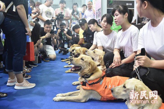安靜、乖巧是現(xiàn)場參觀者對這些導(dǎo)盲犬的第一映像,盡管展會(huì)現(xiàn)場十分嘈雜,人聲鼎沸,但導(dǎo)盲犬們個(gè)個(gè)堅(jiān)守崗位,沒有被現(xiàn)場氣氛所影響。這二十六條導(dǎo)盲犬均來自上海中保華安龍根特種犬服務(wù)有限公司,該公司已訓(xùn)練出數(shù)十條導(dǎo)盲犬,從事軍犬教學(xué)訓(xùn)練及研究工作40多年公司總經(jīng)理孫龍根說,要讓導(dǎo)盲犬成為視障人士另一雙眼睛的同時(shí),也要讓更多視障人士擁有導(dǎo)盲犬。孫龍根培育軍犬、偵查犬、伴侶犬70多個(gè)品種,訓(xùn)練出各種用途的工作犬近千頭。