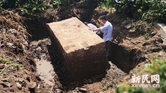 張君文介紹,這具位于奉賢莊行鎮(zhèn)南莊路穗輪1組排河的河道西端的石棺,據(jù)清代光緒年間的《重修奉賢縣志》記載,屬于前蜀丞相潘葛之妻李氏之墓,石棺刻有“天漢四年葬”字樣,而在今天的碑拓中,發(fā)現(xiàn)石碑除“天漢四年葬”幾字外,還有“造”字纂刻印記,系這一次的新發(fā)現(xiàn)。