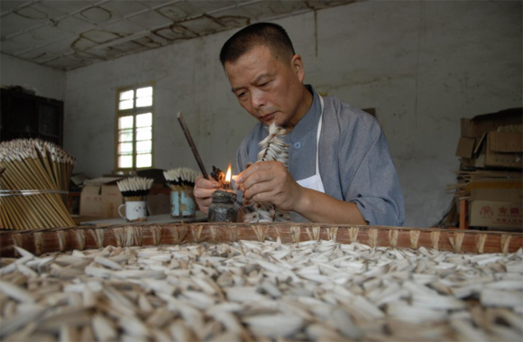 佘征軍制作宣筆(資料圖)