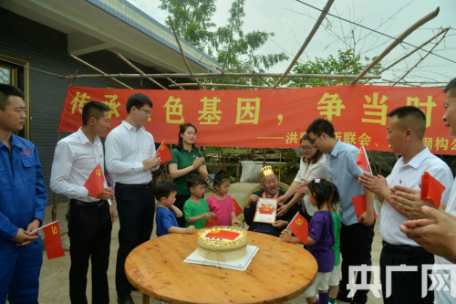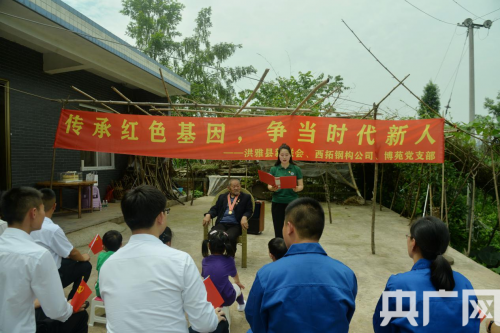 央廣網(wǎng)北京6月22日消息(記者 陳祥銳 通訊員 朱小根 林國強)黨旗迎風飄揚,黨徽金光閃耀。6月21日,在四川省眉山市洪雅縣余坪鎮(zhèn)黃里村1組,光榮在黨69年、百歲老人、志愿軍老戰(zhàn)士宋加銀家里,由洪雅縣余坪鎮(zhèn)黨委政府、洪雅縣新聯(lián)會愛心企業(yè)四川西拓鋼構公司、博苑幼兒園黨支部聯(lián)合開展的“傳承紅色基因,爭當時代新人”活動,老黨員、青年黨員、新階層代表和少年兒童歡聚一堂,追憶紅色歲月,同慶黨的生日,一起過政治生日。
