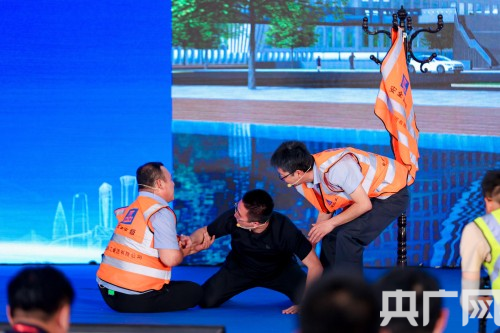 知識(shí)競(jìng)賽活動(dòng)共分為“安監(jiān)者.秀”“安監(jiān)者.答”“安監(jiān)者.拼”“安監(jiān)者.演”“安監(jiān)者.誦”“安監(jiān)者.講”六大環(huán)節(jié),來自5家參建企業(yè)的10支參賽隊(duì)伍從團(tuán)隊(duì)風(fēng)采展示、安全知識(shí)儲(chǔ)備、現(xiàn)場(chǎng)應(yīng)變能力、團(tuán)隊(duì)默契配合等角度進(jìn)行了全方位展示。由中建科工項(xiàng)目安全員原創(chuàng)的安全生產(chǎn)情景劇和安全詩歌朗誦創(chuàng)新宣教形式,增強(qiáng)安全生產(chǎn)教育的趣味性,以主角的身份向大家展示安全常態(tài),用一顆熾熱的責(zé)任心做生命的守護(hù)者。