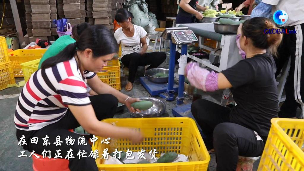 田東縣目前有3000多個電子店鋪銷售芒果,網(wǎng)絡覆蓋全國。在田東縣物流中心,工人們正在忙碌著打包發(fā)貨。農(nóng)村電商的蓬勃發(fā)展不僅為像黃尚善一樣的返鄉(xiāng)青年提供創(chuàng)業(yè)機遇,也提供了更多的就業(yè)機會。