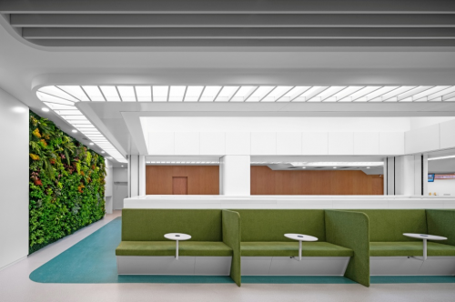 “我們在改造設(shè)計過程中,還充分考慮工作人員辦公環(huán)境的優(yōu)化。合理的采光設(shè)置,工作休息區(qū)的結(jié)合,人性化的辦公家具選擇,空間綠色的植入,這些都讓長時間在這個空間中的工作人員有舒適的辦公環(huán)境,優(yōu)質(zhì)的環(huán)境與優(yōu)質(zhì)的服務(wù)相輔相成。”李怡明說道。