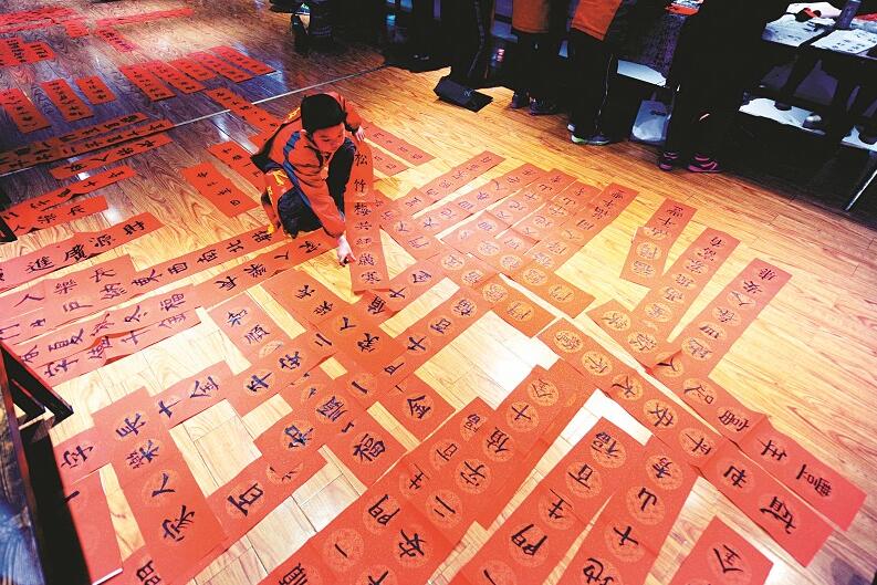 1月27日,太原并東小學的同學們到雙塔商城,為商家和顧客義務書寫春聯(lián),把這項公益活動作為自己的寒假第一課。并東小學是太原市書法特色小學,將書法作為公開課進行義務教育已經(jīng)持續(xù)了30余年。記者 鐘清攝影報道