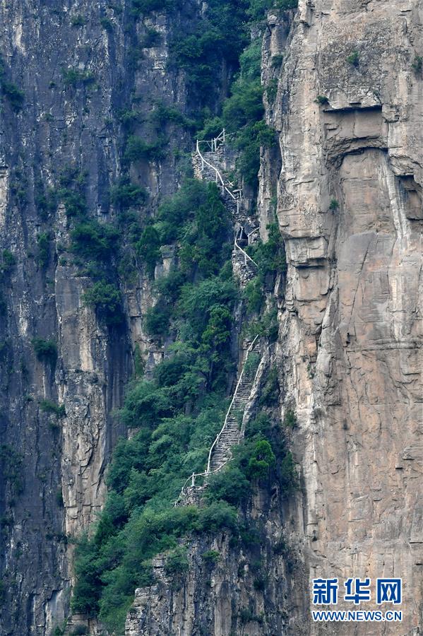 山西省長(zhǎng)治市平順縣神龍灣村懸崖峭壁上的“哈嘍梯”(6月13日攝)。新華社記者 曹陽(yáng) 攝 -