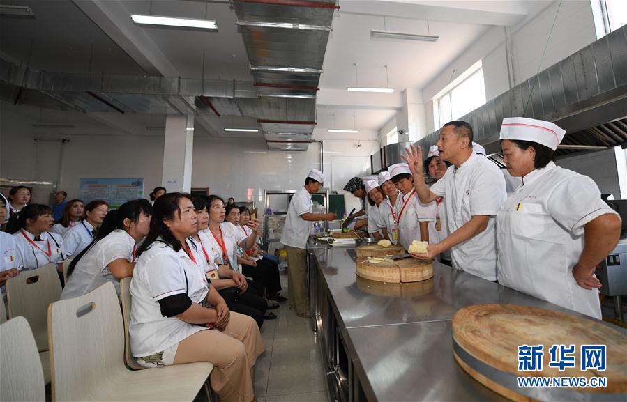 8月15日,嵐縣社科鄉(xiāng)陽坡村村民郭鳳英(左)在培訓(xùn)教師郭群(右)的指導(dǎo)下制作土豆宴 山西省呂梁市嵐縣地處呂梁山北麓,日照充足,晝夜溫差大,種植土豆的條件得天獨厚,全縣土豆種植面積達到30萬畝,年產(chǎn)超過40萬噸。 近年來,嵐縣將土豆產(chǎn)業(yè)與土豆文化高度融合,打造了嵐縣土豆花、土豆宴、土豆種等多個品牌,闖出了一條特色土豆產(chǎn)業(yè)發(fā)展之路。 新華社記者楊晨光 攝 -