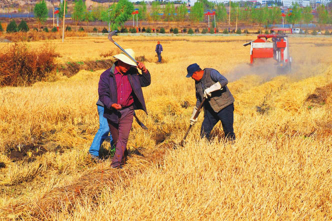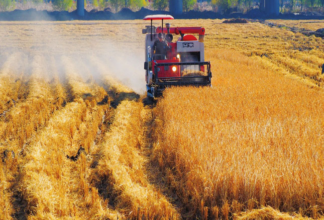 晉祠水稻進入機械化收割的時代。