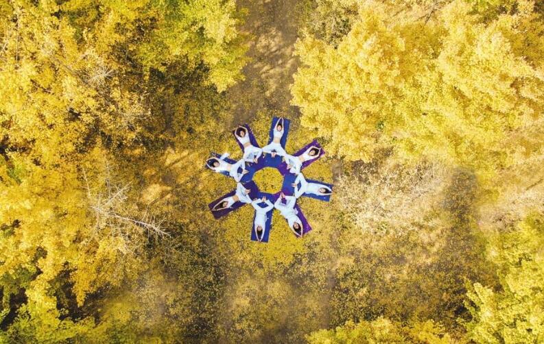 11月1日,翼城縣銀杏苑十里畫(huà)廊,眾多瑜伽愛(ài)好者優(yōu)美的身姿與燦爛的秋色相互映襯,構(gòu)成一幅美麗的畫(huà)卷。胡波攝