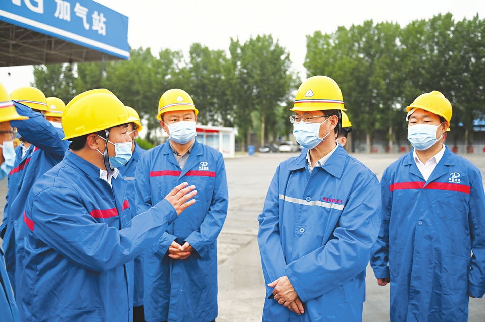 (6月14日,省委副書記、代省長(zhǎng)藍(lán)佛安來到祁縣潔源天然氣有限公司,實(shí)地查看燃?xì)鈨?chǔ)存罐體安全防護(hù),詢問節(jié)假日值守、燃?xì)鈨?chǔ)存運(yùn)輸、管網(wǎng)更新改造等情況。 本報(bào)記者阮洋攝)
