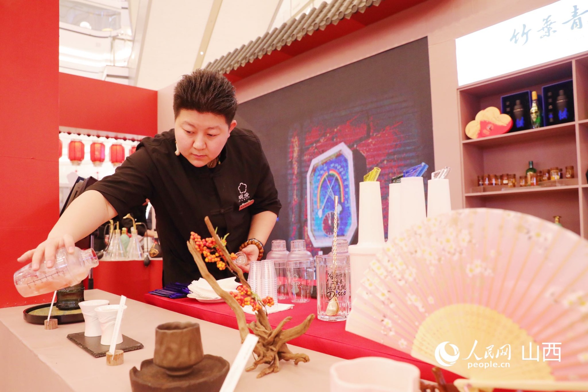 現(xiàn)場調(diào)制玫瑰汾酒(人民網(wǎng)記者 王帆 攝)