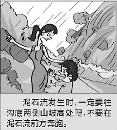 泥石流發(fā)生時,一定要往溝底兩側山坡高處爬,不要在泥石流前方奔跑。