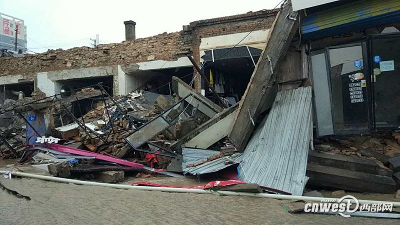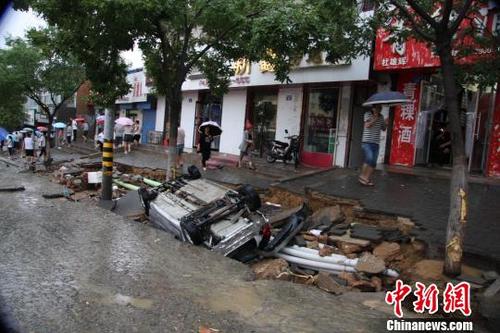 陜西省榆林市遭受暴雨襲擊路面發(fā)生塌陷 圖片來自中新網(wǎng)