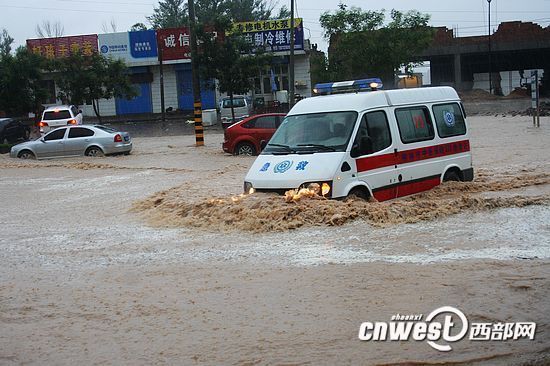 暴雨致榆林城區(qū)部分路段積水嚴(yán)重 圖片來自西部網(wǎng)