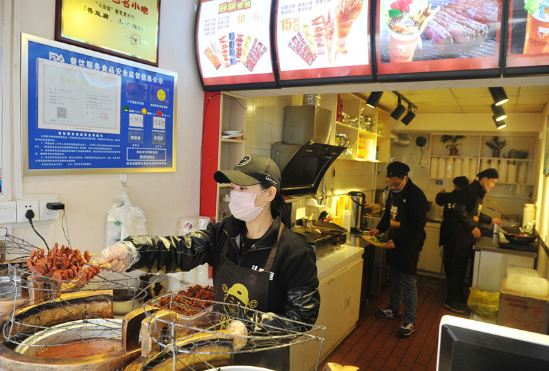 記者在西安市小寨賽格購物中心“袁家村”看到,所有餐品制作窗口全部采用了矮墻或玻璃隔斷的“明廚亮灶”方式,消費者可以看到廚師的操作過程。在煎餅售賣窗口,廚師告訴記者,“透明操作間”的設(shè)立不僅是食品安全的保證,增加了消費者與廚師之間的互動與信任。也成了餐飲文化的一種展示,有的消費者會用手機拍照或者拍小視頻分享給朋友,也是對特色餐飲店的一種宣傳。