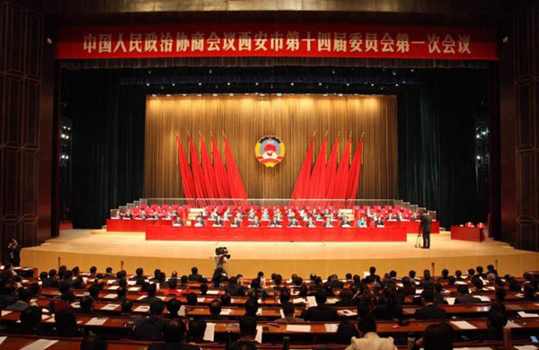 政協(xié)西安市第十四屆委員會(huì)第一次會(huì)議閉幕大會(huì)現(xiàn)場(chǎng)。