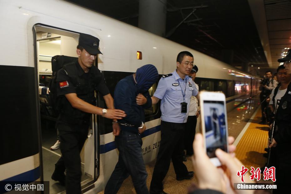 9月4日晚11時(shí)許,隨著列車緩緩進(jìn)站,25名犯罪嫌疑人從哈爾濱押解回西安。據(jù)該局相關(guān)負(fù)責(zé)人介紹,押解時(shí)間長(zhǎng)達(dá)一天一夜,為防止嫌疑人自殘或脫逃,押解民警將自己和嫌疑人拷在一起。目前,這25名嫌疑人因涉嫌網(wǎng)絡(luò)詐騙,已被公安航天分局立案調(diào)查,目前案件還在偵辦中。張杰攝 圖片來源:視覺中國(guó)