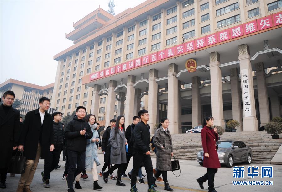 1月22日,參加寒假見(jiàn)習(xí)的大學(xué)生參觀陜西省人民政府辦公樓。 新華網(wǎng)消息 當(dāng)日,來(lái)自17所高校的109名大學(xué)生走進(jìn)陜西省政府大院接受培訓(xùn),他們將被分配至40個(gè)廳局部門(mén),開(kāi)始為期39天的“準(zhǔn)公務(wù)員”見(jiàn)習(xí)生活。新華社發(fā)(張博文 攝) -