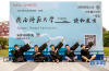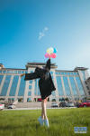 畢業(yè)生們用獨(dú)特的姿態(tài)與校園合影。新華網(wǎng)發(fā) 楊思宇攝 -