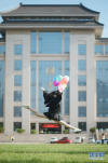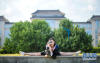 畢業(yè)生用獨(dú)特的姿態(tài)在圖書館前留影紀(jì)念。新華網(wǎng)發(fā) 楊思宇攝 -