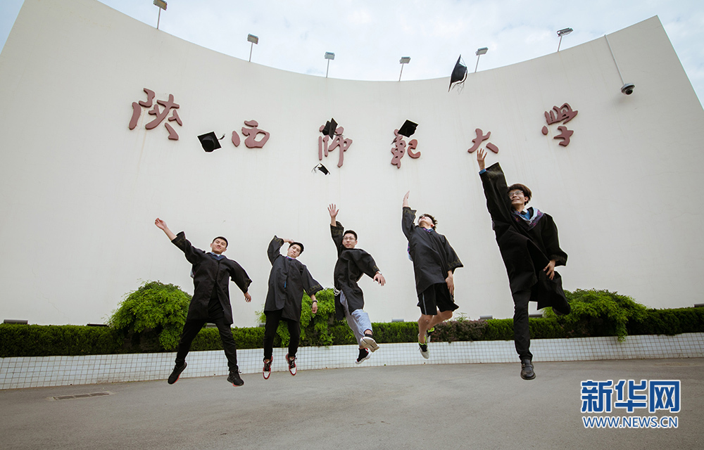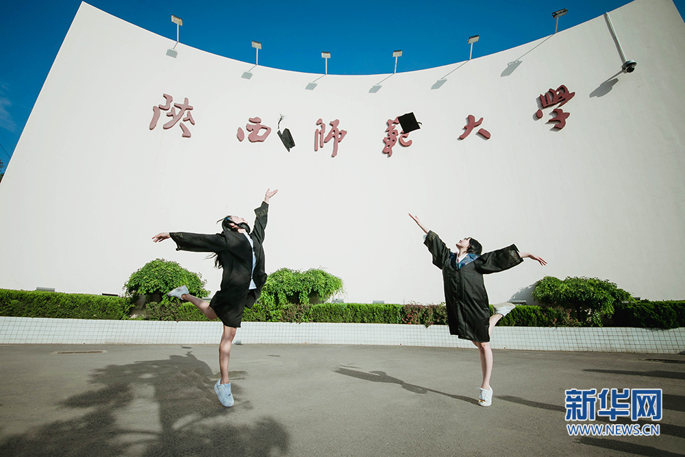 陜西師范大學(xué)畢業(yè)生帶著家人在校園畢業(yè)海報(bào)前留影紀(jì)念。新華網(wǎng)發(fā) 王江川攝 六月的夏季帶著離別的味道,而第一次踏進(jìn)校園的悸動(dòng)至今記憶猶新。從軍訓(xùn)服到學(xué)士服,從大學(xué)生到“社會(huì)人”,是你看著我一點(diǎn)點(diǎn)成長,教導(dǎo)我厚德、積學(xué)、勵(lì)志、敦行。畢業(yè)季悄然來臨,在離開之前,陜西師范大學(xué)的畢業(yè)生用獨(dú)特的姿態(tài)與校園合影,留下屬于自己的專屬記憶。(汪艷)