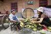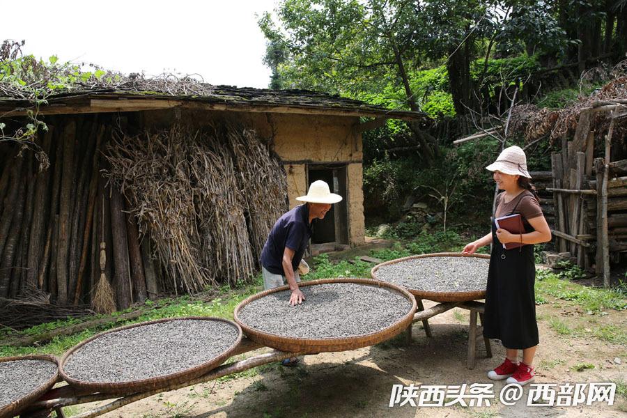 3月種的油葵,8月已收獲。譚潔和88歲的老奶奶一起脫葵花籽,在村里老人眼里,譚潔就是他們的小孫女。 -