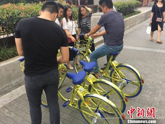 中新網(wǎng)陜西新聞6月8日電(阿琳娜 燕武)“土豪金”車身、寶藍(lán)色坐墊、可充電的手機(jī)支架……西安街頭8日出現(xiàn)“土豪金”版共享單車,不少朋友圈被刷屏的年輕人專程前往“嘗鮮”,體驗(yàn)全新“黃金座駕”。
