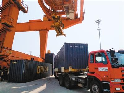 港務(wù)區(qū)內(nèi)是一片繁忙的景象 記者 竇翊明 攝