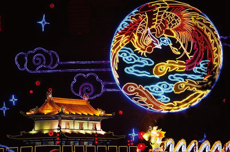 被彩燈裝扮一新的西安城墻 記者 吳岸彪 攝