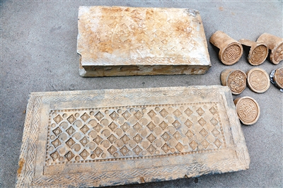 昨日下午,記者在公安閻良分局看到,被趙某等人盜挖的文物有云紋瓦當(dāng),有尺寸較大的漢磚,瓦當(dāng)上有精美的圖案和文字,漢磚制作講究,配有漂亮的紋飾。在作案工具中,除了鐵锨之外,還有兩根很專業(yè)的探針。
