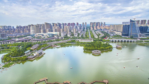 空氣良好時(shí)的西安曲江南湖 記者 劉強(qiáng)攝