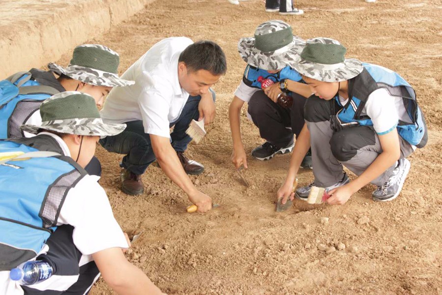 活動當日,清華大學附屬中學秦漢學校的學生們還體驗了模擬考古,感受考古發(fā)掘的科學性、神秘感和成就感。