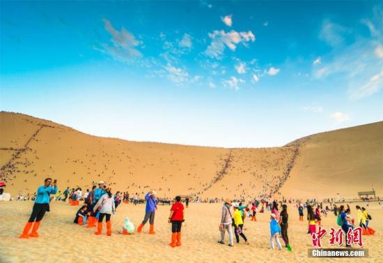 鳴沙山月牙泉景區(qū)游人如織 王斌銀攝