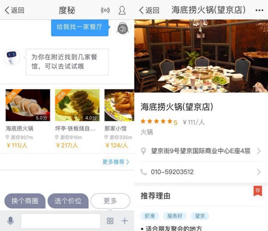 不過,在滿足用戶需求上,依托百度內(nèi)容、服務(wù)及金融生態(tài)的度秘,能為用戶提供比Google Assistant更為全面的服務(wù)滿足。譬如,當(dāng)你在度秘上發(fā)出訂餐指令時,度秘能提供詳細(xì)的價格、距離、地圖、推薦理由,并直接完成在線支付。缺失了天然O2O基因的Google Assistant則難以實(shí)現(xiàn)服務(wù)閉環(huán)。此外,度秘還推出了智能提醒功能,通過明星語音、機(jī)器人打電話、設(shè)置鬧鐘等多種形式照顧用戶生活。