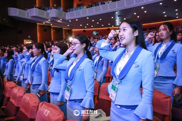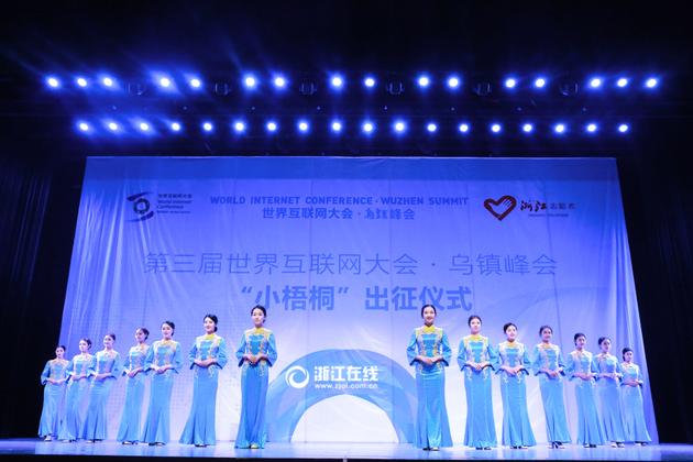 11月12日上午,浙江桐鄉(xiāng),第三屆世界互聯(lián)網(wǎng)大會(huì)烏鎮(zhèn)峰會(huì)志愿者出征儀式,“小梧桐”志愿者身著新裝閃亮登場(chǎng)。