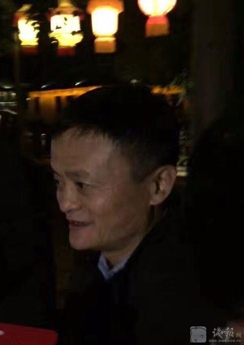 馬云穿著深色夾克、棕色褲子,心情看著不錯(cuò),臉色不紅,看來(lái)酒喝得不多呀。