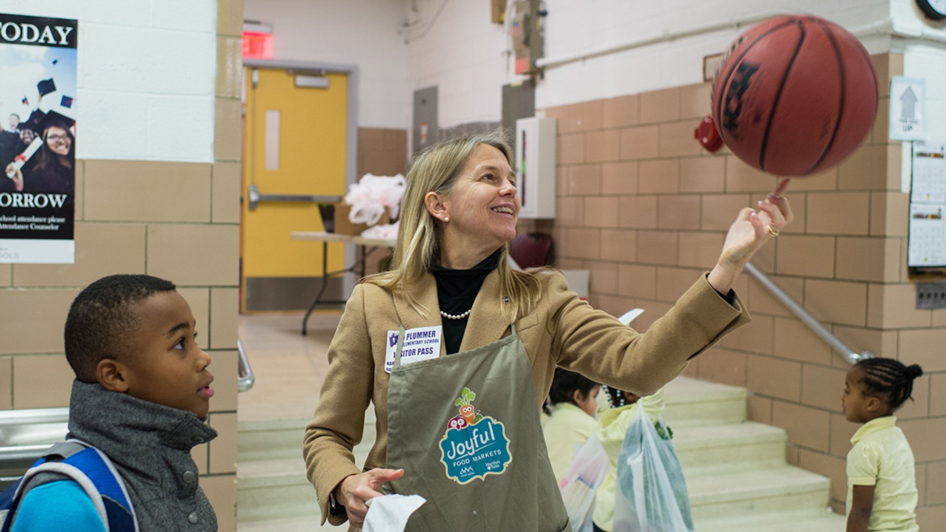 拍攝于2016年1月19日,圖為美國國家航空航天局副主管達(dá)瓦 紐曼在一所小學(xué)展示球技 -