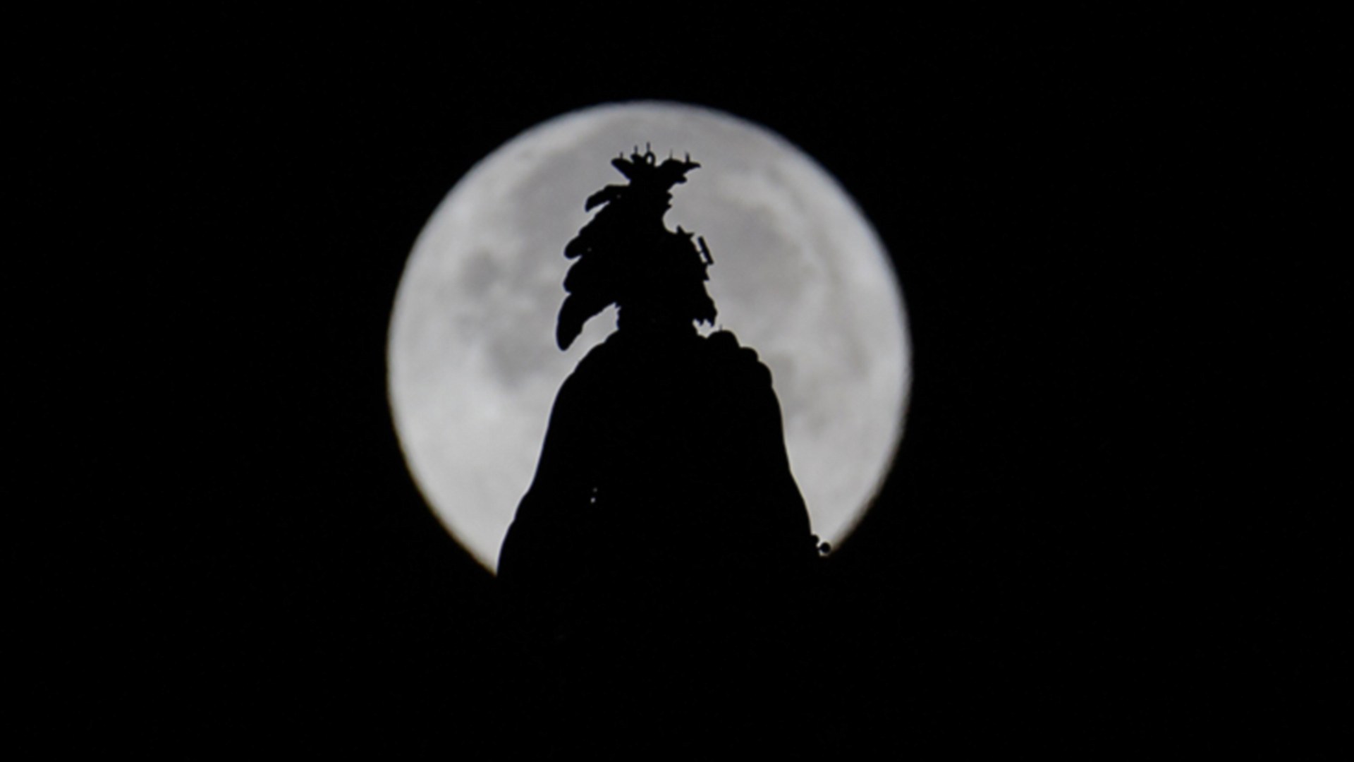 圖為2016年11月14日超級(jí)月亮下的自由女神像