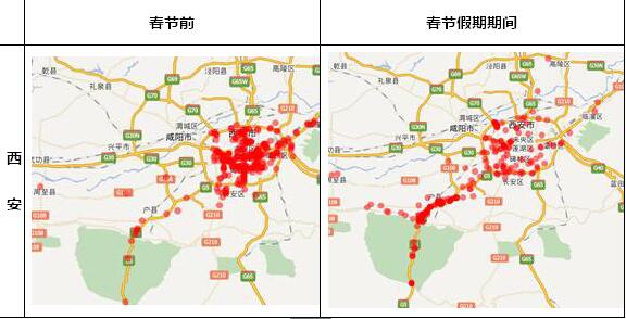 由上圖中偽基站活躍對(duì)比圖可知,春節(jié)期間偽基站短信分布重心,由城市的中心街道轉(zhuǎn)移到城市周邊的高速公路了,估計(jì)是騙子預(yù)測到春運(yùn)期間高速公路上是人流最密集的區(qū)域。由此可見,春節(jié)期間偽基站不僅活躍城市發(fā)生了變化,在同一個(gè)城市的工作區(qū)域同樣發(fā)生了變化。