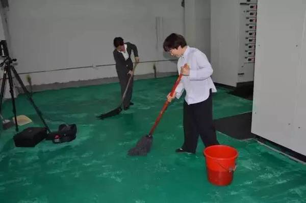 頭頂烈日沖洗路面