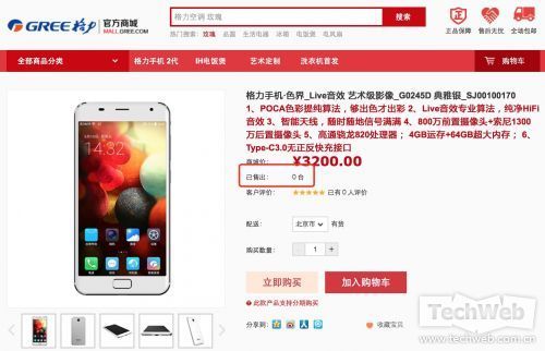 該機售價3200元,這價位在目前旗艦手機市場已經(jīng)沒什么優(yōu)勢了,通過格力官網(wǎng)“已售出”累計來看,總共僅只賣出了5臺(其中奢華金賣了4臺,玫瑰金1臺,雅典銀0臺),引起了眾多網(wǎng)友猜測這款手機竟然會有人賣?購買的人是那種類型的人呢?
