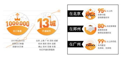 近日,滴滴出行通過(guò)其官方微信號(hào)公布了滴滴優(yōu)享日單量突破100萬(wàn)的成績(jī)單,拿下網(wǎng)約車中端市場(chǎng)。2月末上線至今,優(yōu)享已在北、上、廣、深、杭、南京等13個(gè)城市提供服務(wù)。其中,在北京95%以上的優(yōu)享行程獲乘客好評(píng),在鄭州80%的乘客愿意向親友推薦優(yōu)享服務(wù)。