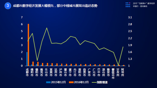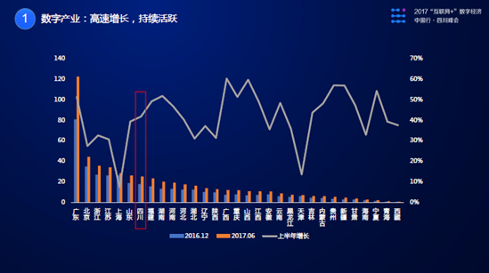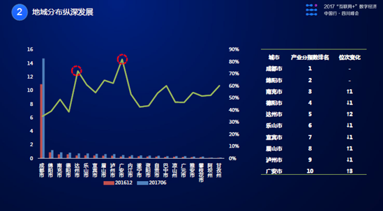 以成都為核心的成都平原地區(qū)已成為數(shù)字經(jīng)濟(jì)發(fā)展核心地帶,帶動四川全省消費升級。達(dá)州、樂山、南充、綿陽、德陽等城市的數(shù)字經(jīng)濟(jì)均取得了較快增長,2017年上半年整體增速領(lǐng)先于四川其他區(qū)域。