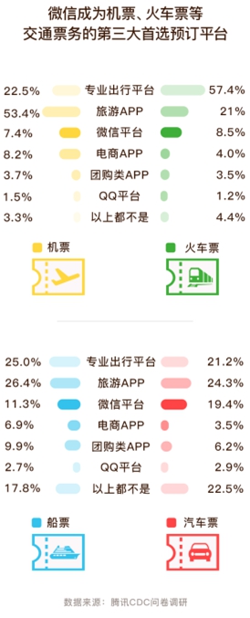 微信平臺(tái)已成為交通票務(wù)的第三大首選平臺(tái)