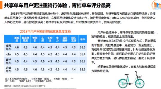 報(bào)告插圖:共享單車用戶更注重騎行體驗(yàn),青桔單車評(píng)分最高