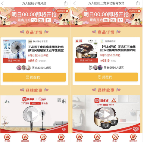 對此,有業(yè)內人士指出:“在新增用戶大量涌入之際,(拼多多)推出‘萬人團’活動,意在進一步提升用戶的留存和復購率。從行業(yè)角度看來,5月是電器類等產品的銷售旺季,活動也契合了市場需求!