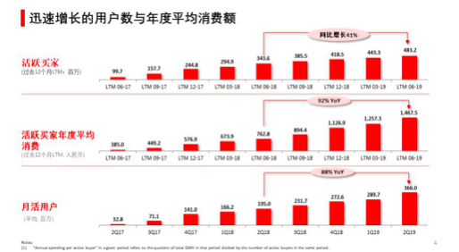 平臺GMV的增長主要源自用戶規(guī)模的大幅增長和平均消費額的全面提升。