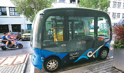 8月19日,由百度參與研發(fā)的全球首款L4級(jí)別無(wú)人駕駛巴士“阿波龍”通勤車(chē)亮相長(zhǎng)陽(yáng)創(chuàng)谷。